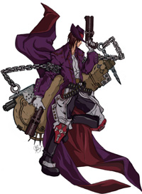 What the fuck is this game even about? All I know is that Grave (or “Guuraybuh”, as the all-Japanese cast pronounces it) has come back from the dead in search of revenge. Like the Crow. Or Jimmy Bones. Whatever. Screw plot, screw strategy; this game is all about jumping into the middle of shit and killing everyone in sight, spinning and dodging as your gigantic twin guns put holes in anything in your way.