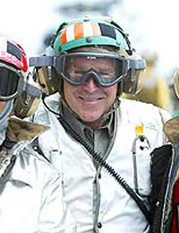 Tally ho, dudes and dudettes! The "Iceman" cometh, and he is me: Dubya! I'm here on the U.S.S. Civilian Casualty; a gigantic boat full of planes. Who knew that planes like to ride the boat?!? I know I didn't. Maybe they're Transformers. Or GoBots. Probably GoBots, what with the recession and all.
