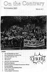 If you’re not like us, and wouldn’t know where to begin to get learned on the world around you, On The Contrary is a good place to start. Issue Two of this hand-holdable, absolutely free zine (courtesy of proactivist Rachel Holmes) collects informative political and social pieces from other publications, original creative writing, poetry, some political satire, and a reprint of our very own interview with director John Roecker.
