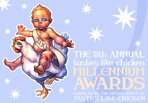 BEATING A DEAD HORSE OF THE MILLENNIUM: INSANE WAYNE CHINSANG AND TASTES LIKE CHICKEN - For heroically exhibiting that never-say-die attitude America has come to admire. Sure, the Millennium Award joke was tired three years ago; however, we will tell you when it is time to stop laughing. And we're not gonna stop until we rip the damn teat off every single joke while squeezing out every last drop of nectar the beast has to give. We are tastes like chicken, and you have our word on it.
