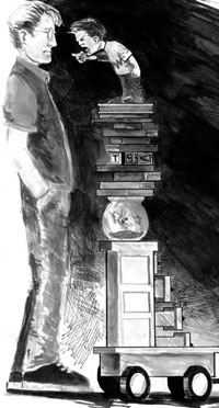 One lil' fella will say, "What the fuck? We're short with pudgy limbs, but who says that's a mistake? Maybe being a tall, gorilla-armed, knuckle-dragging freak is God's BIG mistake! Ever think about that, Kirkbride, you deformed giant freak-ass motherfucker?"