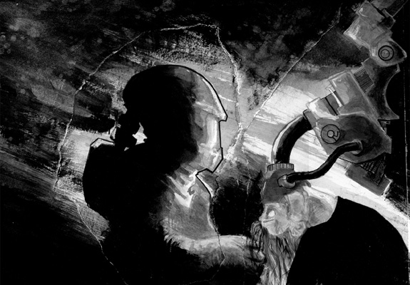They took everything in 60-seconds flat. The bed, my clothes, the room, everything. Two more technicians in bio-suits entered, wheeling a large silver tank. They jerked my head back and applied a rubber mask to my face, and I felt a tube crawl down my throat on its own power. I thrashed about helplessly, unable to move, as they siphoned the very air from my lungs.