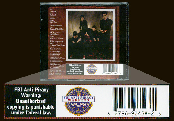 I noticed your anti-piracy label (printed enormously on the back of the CD), which clearly states that "Unauthorized copying is punishable under federal law." Now, even though I am the kind of person that would steal almost anything, I just wanted to let you know that you don't have to worry about me copying this CD and giving it out to anyone. In fact, if you find anyone that has copied this album, and you confiscate those discs, please send them to me and I will be happy to burn them. Or how about this? If you find anyone that bought this album, please send the disc or the person to me, and I will be happy to burn them. Cool?