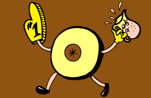Luckily, I've got it all planned out already, so once I get the green light I can set all of my dreams in motion. First, a pro sports team needs a mascot, right? You got it. And the Milwaukee Brown-Eyes will be no different. Our mascot will be named Stinky, and he will be the talk of the NFL. Basically, he'll just be a big brown circle with one huge brown eye right in the middle of his... head-like... brown circle thing. Oh! And he'll have a huge mouth right in the middle, and it will kind of be pursed and puckered, like he's about to say, "Oooooo!!! Catch the foooootball!!!" He won't have ears or a nose (thankfully), but he'll have skinny, flesh-toned arms and legs, and a bright yellow, three-fingered glove on each hand. That way he can walk around the stadium, hugging little kids and giving them chocolate bars and glasses of lemonade! Kids love chocolate and lemonade! The kids will yell from their seats: "Mmmm... thanks, Stinky the Brown-Eye!"