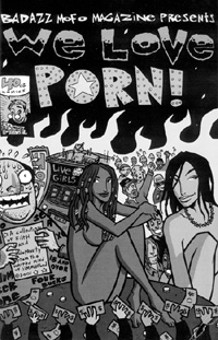 We Love Porn is more than the battle cry of the oversexed all-American. It’s also one of the newest comic books to come from the beautifully sinful mind of underground wonder-child, Jim Mahfood. We Love Porn collects a series of gut-busting, boobie-strutting adult comics by Jim that have appeared in Playtime and Blue Food magazine. It opens with an unruly look at some bad ideas Mahfood had for comics, including “Fuck All Ya’ll” and “Bunny The Fratboy Slayer”. Then, the book romps on through seven tales of strippers, sex, Santa, and donuts. One minute an undead Abe Lincoln is threatening to destroy the world, the next a dejected child is setting his negligent crackhead mom on fire. Honestly folks, I’ve never seen anything like this before. Of course there is the occasional jerk-off gag and a wicked panel where a Murderous Space Cock has his entire head planted in a girl’s rear end, but the book is more than just butt-naked cartoon honeys getting plugged left and right. We Love Porn is loaded with Mahfood’s sense of youth, social humor and bomb-ass art that has made his previous works so enjoyable. It’s definitely worth checking out, whether you’re a 40 oz. Comics enthusiast, or just someone looking for a good, fun read.
