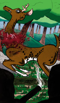 Run like hell, you stupid animals! I got a box full of bullets and your blank-eyed heads are my target! I'm gonna riddle you with ammunition like ol' Uncle Sam riddled Chuck and the gang back in 'Nam. As God is my witness, if you ain't walkin' upright through them woods, you won't be walkin’ at all.