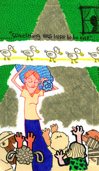 A short, yellow bus shrugged up to the pond, and a group of retarded children poured out, followed by an extraordinarily thin woman hoisting a large bag of something over her shoulder. The ducks had made it to the pond by this time, and quickly swarmed around the children in anticipation. The thin woman managed to get the sack off her shoulder and open it, revealing the contents to be popcorn. The children squealed with pleasure as they used their somewhat limited athletic ability to toss handfuls of popcorn around them, where it was quickly devoured by the ducks, who had become almost frightening in their manic attempts at over-consumption. The retarded children didn’t seem to mind or notice, though, as they became enmeshed in a cloud of feathers and popcorn.