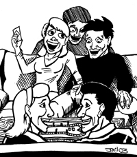 Coquette!!!® can be played with one to six players, although the game is usually more fun with more than one player! Each player should choose a game piece to represent him/herself in the game. Next, everyone should roll the die to see who goes first. The highest roller is the winner, silly. The first player rolls the die to see how many spaces they are to advance. Occasionally, the player will land on a "Draw" space. When this happens, the player should draw one of the Coquette!!!® game cards. This is where the crazy fun begins! You could be asked to profess your love in the form of a song, have a midnight rendezvous, or simply talk and cuddle throughout the night! Don’t worry though; you don’t really mean it! The other players will then judge your performance, and decide whether or not to award you with a Broken Heart Card©. Then, the next player goes! Play continues until all Broken Heart Cards© are dispensed, or until all players move into a cave or join a monastery!