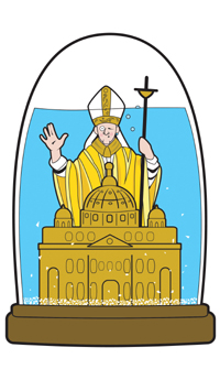 I have this awesome snow-globe of a gigantic Pope standing over the Vatican City. The water doesn't fill the globe completely, so it kinda looks like gigantic Pope is drowning.
