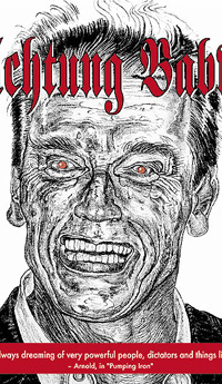R: That was about the poster. Until yesterday, the election was going to be held on October 7th, which is really soon. I had pulled a couple all-nighters to do a drawing of Arnold since-- pardon the expression-- he's the poster boy for everything that's wrong with the American Dream,.. the American Nightmare. He's a power-mad, Austrian body builder.