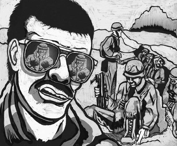 In the village, the emotions are mixed. The Americans are coming, but that means different things to everybody. Everything is closed, though. No market today, or banking. Everyone is indoors but one man, who lies unconscious near a pharmacy. Other people are baking bread to feed their families, or settling into their basements surrounded by scores of religious tracts and canned goods, while others are enjoying the crisp clicking noise their machine gun makes as it’s loaded with bullets.