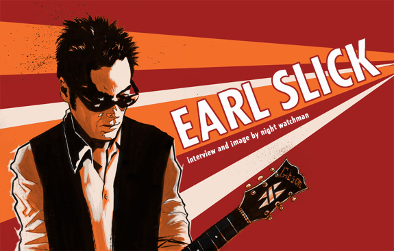AFTER TAKING A SABBATICAL FROM THE MUSIC INDUSTRY, EARL SLICK HAS RETURNED TO HIS SPOT AS GUITARIST FOR DAVID BOWIE, AND RECENTLY RECORDED A STAR-STUDDED NEW SOLO ALBUM TITLED ZIG ZAG. NIGHT WATCHMAN CAUGHT UP WITH EARL OUT ON TOUR TO FIND OUT HOW HE GOT STARTED, AND WHERE HE’S HEADED NEXT.