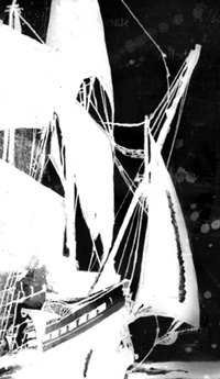 I opened my mouth to taste the rain, breathing it in, and a gigantic bottle fly alighted on my shoulder. The buzz of the tiny wings was deafening; I could see the cobalt blues and the wild greens shimmering on its body before it buzzed again and flew away, tracing triangular patterns in the strange fire around me. A wooden pirate ship sailed down High Street, the wind billowing her tattered sails with a fluttering roar, the crow’s nest narrowly missing the stoplight before it disappeared again.
