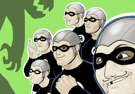 CM: Yeah, the Anti-Negativity Helmets. So we all played the show. Even though The Aquabats is a superhero name and the outfits are similar, it really wasn’t a superhero thing, at first. It was sort of like... well, Devo, surf bands, and ska, because our friend plays the trumpet and I like Madness. So that’s kind of how it all originated, and it just sort of evolved out of that.