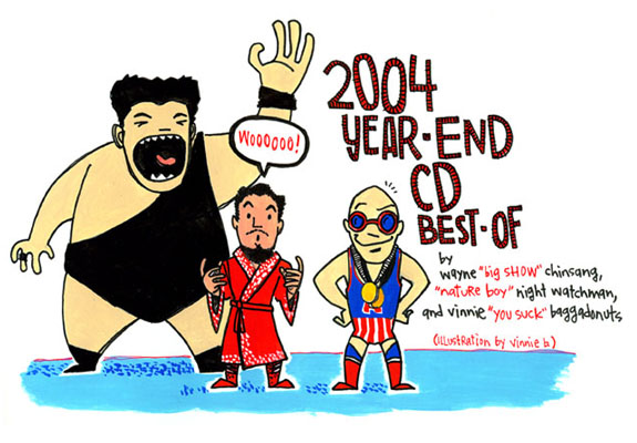 Feign enthusiasm once again, dear readers. It’s time to patronize Wayne, Watchman, and I as we tell you our favorite CDs from 2004. Get those Amazon wish lists ready, bitches! If you want to be cool as Carlito, you gotta listen to this shit.