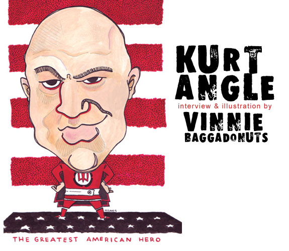 HE WON OLYMPIC GOLD WITH A BROKEN FREAKIN' NECK. HE SHOT BIG SHOW WITH A TRANQUILIZER GUN. HE EVEN PARODIED BILLY CRYSTAL’S ROLE IN WHEN HARRY MET SALLY FOR ONE OF THE MOST HILARIOUS WRESTLEMANIA 21 PROMOS. AS AN ATHLETE AND AN ENTERTAINER, KURT ANGLE IS WWE’S GREATEST AMERICAN HERO. AND ON A RATHER BUSY MEDIA DAY, HE GAVE US A QUICK SCOOP ON HIS UPCOMING MATCH WITH SHAWN MICHAELS, HIS TRIP TO IRAQ, AND THE FUTURE OF THE WWE'S ONLY OLYMPIC MEDALIST.