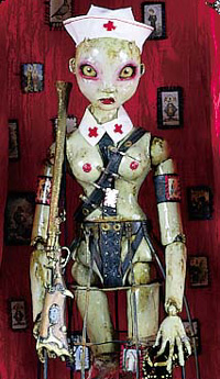 L: I have a show coming up in September at the Copro/Nason Art Gallery. Next week, I’m going in to record with my friend’s band. I have a few other projects like that. After that I want to do a solo show. All the new stuff that I’ve got is different than some of my other work. It’s more Art-Nuevo and there are more dolls and stuff in it.