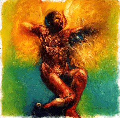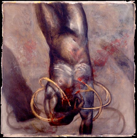 MA: That’s a good question. I think in a way it is. I think in a way there were moments in those dark paintings where I had dug a hole very deep, and it was very black down there and I knew that I had to come out of that hole. But looking back on it I think it was an exploration of my dark side, without question. I mean, these aren’t pictures about other people. They’re pictures about me, and I think once I had gotten the dark side out I could explore the light side, but I couldn’t do them at the same time. And then I began to understand that there is actually a compatibility between the two, and that you don’t get one without the other. So in the middle of it there were moments when I was much darker in conversation, and I’m sure even action. The other part of it is [Gustave] Flaubert [French novelist] said something like, "Eat like the bourgeois, dress like the bourgeois, and save your anger for your work." When you get into your intuition the most accessible emotion that any of us have is, unfortunately, anger. It is much more difficult to access love, for lack of a better word. So accessing the dark is easier than accessing the light, and I think during that whole period that’s where I was. In other words, there was an emotion in me that I kept trying to depict, and I did it over and over and over again. In terms of the illustration world, it didn't bother me because I put myself there. It was the drawing book that was my portfolio. I didn't know that at the time, but that's what it was. So it wasn't that they put me in that category. I put me in that category. So for all those assignments that still continue-- the last thing I did was for Texas Monthly a couple months ago, and it was on all those Mexicans who had been trapped in a van with no ventilation, and they died migrating up to America. So people are not going to call me up to paint auras. I know that. So the commercial work I get still tends to go back to that portfolio on violence. People have said to me, "Isn't it weird for you? I mean, here you are painting these animal transitions. Does it bother you to go back? Isn't that going back?" And I said, "This is not a progress idea." It's not like you take a step, take the next step, and you finally reach enlightenment. It's a byproduct. I haven't lost those emotions. I'm less driven by them, but I haven't lost them. So to tap into that thirty years later doesn't seem weird to me at all. It's like going back to an old friend. Because I suppose that's all we're all trying to do, is make friends out of these emotions. Once you make a friend out of it, then it's not as terrifying.