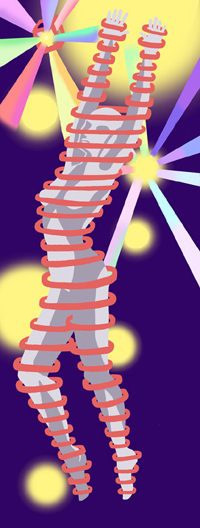 But the sounds of your own actions seem to somehow fit into the rhythm of the music. And the song builds in complexity along with the increasingly intricate visuals as you progress, staying in time with the rhythmic pulses of your character and the metronome vibration of the controller, as you sit there wondering just how your commands always seem to coincide perfectly with the soundtrack. After you've made your way fairly deep into a level, you begin to feel the music in your hands, see it on the screen, and sense it in your own actions. At some points, when an arpeggio of your laser blasts serves as a perfectly-timed counterpoint to a measure of the background music, it seriously feels like the game is playing you./smaller>/fontfamily>