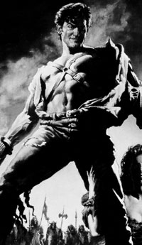 FORGET THOSE FOO-FOO PRETTY-BOY HOLLYWOOD FILM STARS. YOU KNOW, THE ONES WITH MILLION-DOLLAR SALARIES AND TEN-CENT ABILITIES. THEY CAN'T HOLD A CANDLE TO THIS MAN, BLUE-COLLAR HOLLYWOOD'S HARDEST WORKING HERO. HE'S THE LEGENDARY BRUCE CAMPBELL, AND HE GENEROUSLY ANSWERED THE QUESTIONS OF TASTES LIKE CHICKEN'S FRANK PUTZERELLI. READ ON, MY CHILDREN.