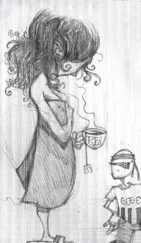 For the next half-hour or so, I stare at the sky and let Shalon deal with all weak attempts at conversation. She's much better at that. My input is usually a loud laugh when it's least needed. I view the whole scene as though from across the pool, and so can find it quite amusing.